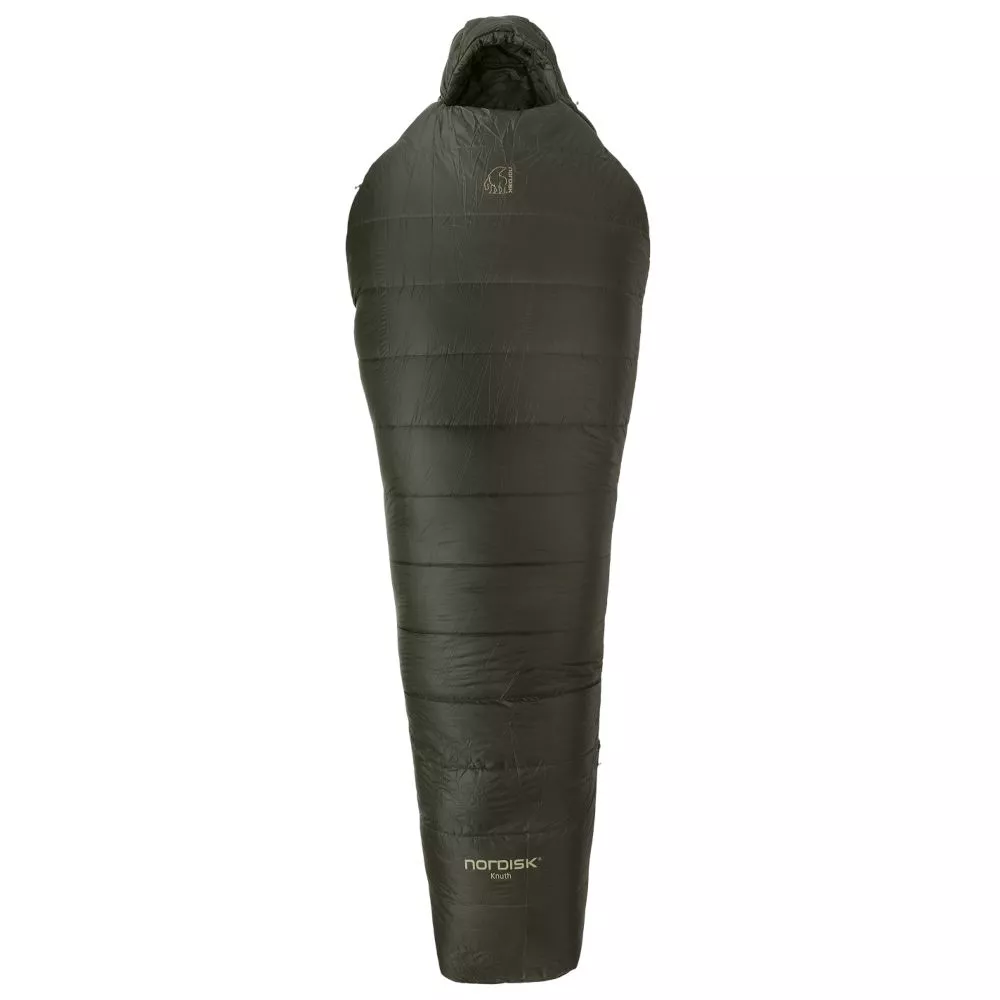 Der mumienförmige Nordisk Knuth ±0° in Grösse L ist ein klassicher 3-Jahreszeiten-Schlafsack. Die Kapuze in 3D-Form mit verdecktem Kordelzug sorgt in kalten Nächten für eine perfekte Passform. Ein Schlafsack, der dank des zweiten halblangen Reissverschlusses Bewegungsfreiheit für beide Arme bietet. Zudem verfügt der Haifischflossenförmige Fussbereich über eine weitere Reissverschluss-Belüftung.