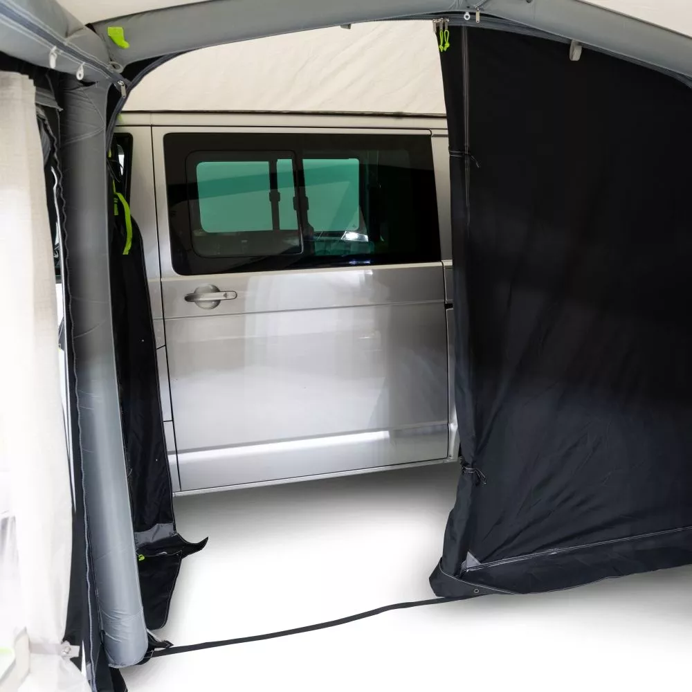 Das aufblasbare Buszelt Dometic Club Air Pro Drive-Away ist ein freistehendes und grosszügiges Busvorzelt. Es ist passend für alle Campingbusse mit einer Anschlusshöhe von 180 – 225 cm. Damit du mit deinem Campingfahrzeug nicht dauerhaft am Platz stehen bleiben musst, ist dieses Busvorzelt freistehend. Schliesse das Vorzelt komplett und erkunde deine Urlaubsregion. Nach einem erlebnisreichen Tag fährst du zurück zu deinem Dometic Vorzelt und schliesst es einfach wieder mit dem Fahrzeug an. So bleibst du ungebunden und kannst im Urlaub selbst entscheiden, wann du welche Tagestour unternimmst, ohne nach einer neuen Aufstellmöglichkeit für das Busvorzelt suchen zu müssen.
