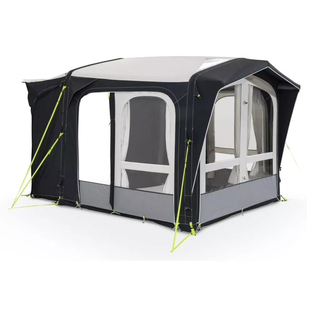 Mit einer Vorzelttiefe von 2,4 Metern hast du genug Platz um das Dometic Club Air Pro nach deinen Wünschen einzurichten. Auch eine Schleuse von 90 cm ist enthalten, um den Ein- und Ausstieg aus dem Campingbus leichter zu gestalten. Das kleine aufblasbare Vordach schützt die Front vor Regen. Durch die Fenster und die Aussparungen im Dach fällt sehr viel Tageslicht ins Zeltinnere. Für mehr Privatsphäre kannst du die mitgelieferten Vorhänge zu ziehen. In der Nacht lassen sich die Sterne durch die Oberlichter beobachten. Für eine angenehme frische Luftzufuhr sorgen die Belüftungsmöglichkeiten in Seiten- und Frontteilen. Ein Fliegengitter befindet sich im rechten Seitenfenster. Geschützt unter dem Vordach befindet sich eine Apex-Hochentlüftung. Zudem lassen sich die Front- und Seitenwände per Reissverschluss komplett entfernen. An sonnigen Tagen kannst du die Natur in vollen Zügen geniessen. Optional erhältlich sind zudem praktische Moskitonetzvorhänge, ein passender Vorzeltteppich für noch mehr Komfort und eine passende Vorzeltunterlage.