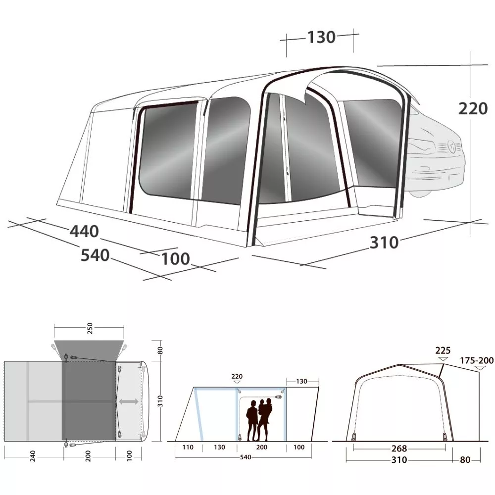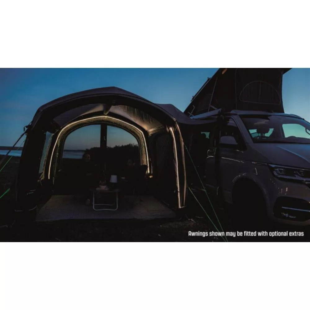 Das aufblasbare Busvorzelt Outwell Jonesville 440SA Flex wird parallel zum Fahrzeug aufgestellt, um deine Stellfläche optimal auszunutzen. Dabei kannst du selbst entscheiden, auf welcher Vorzeltseite du die abnehmbare Schleuse mit zwei gegenüberliegenden Eingängen montieren möchtest. Das ist besonders vorteilhaft, wenn du Besitzer eines Campingbusses mit zwei Schiebetüren oder einer Heckküche bist.