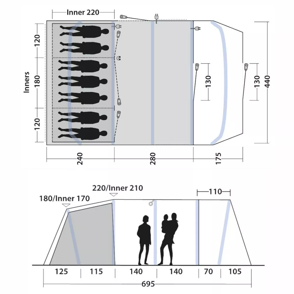Das Tennessee 7 Air aus der Outwell Deluxe Air Collection ist ideal für Familien, Gruppen und Freunde, die ein zuverlässiges und langlebiges Campingzelt mit praktisch komfortabler Ausstattung suchen.