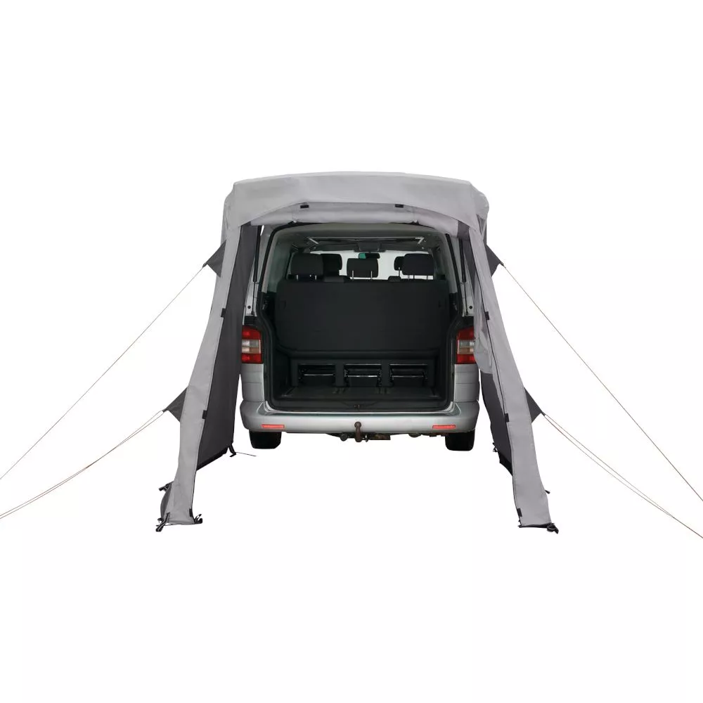 Die vielseitige Konstruktion des Easy Camp Krossbu Heckzelts schafft flexibel nutzbaren Raum für den Campingbus. Mit zwei Abspannleinen wird das Zelt schnell, einfach und sicher an der Heckklappe befestigt. Geeignet für Fahrzeuge mit einer Anschlusshöhe von 185 – 200 cm.