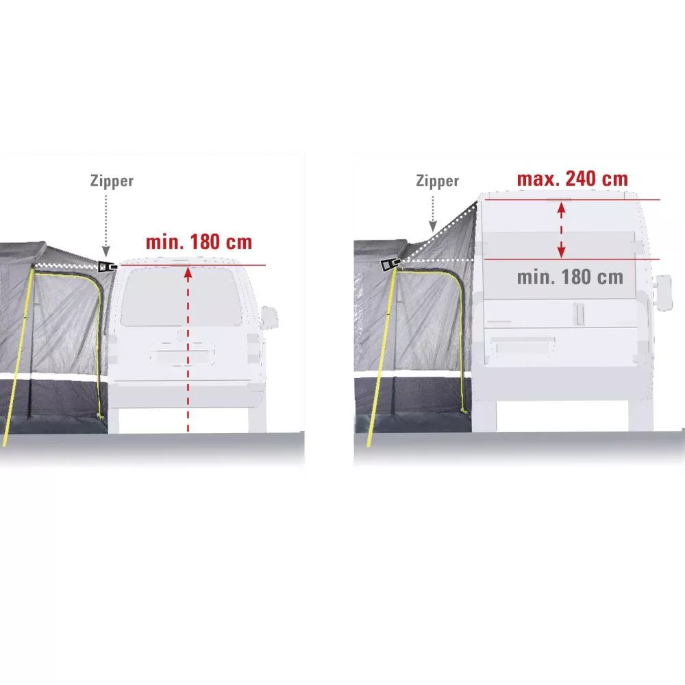 für Campingbusse, Minivans und Wohnmobile mit einer Anbauhöhe von 180 – 240 cm