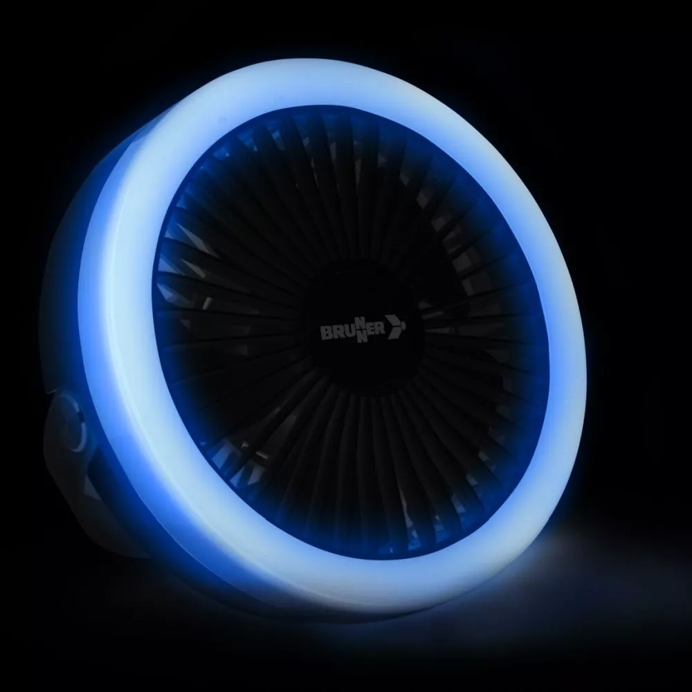 Der wiederaufladbare Camping-Ventilator Moonbelle von Brunner mit LED-Licht erweist sich als zuverlässiger Begleiter, den du auf Reisen nicht mehr missen möchtest. Im modernen 2-Farben-Design ist der tragbare Ventilator mit drei einstellbaren Windgeschwindigkeiten und Helligkeitsstufen ausgestattet.