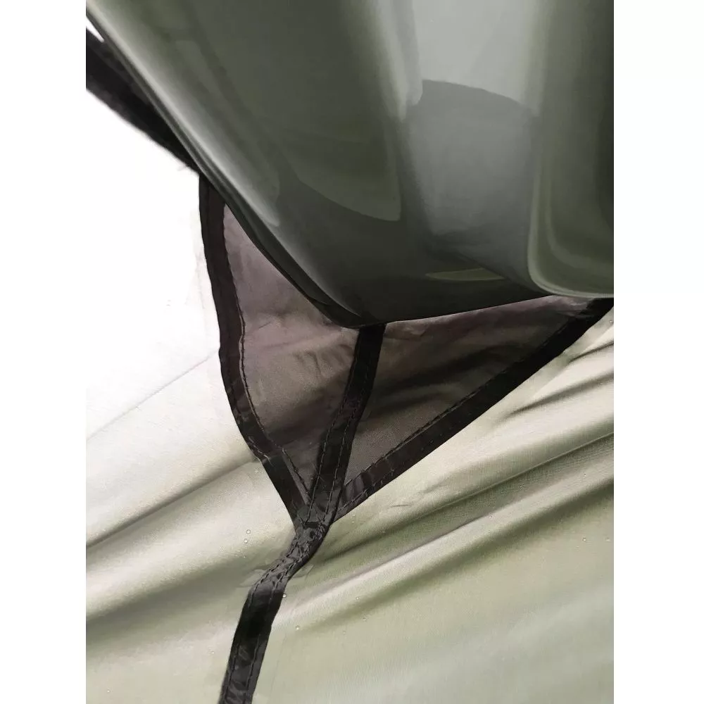 einfacher Aufbau ohne Gestänge durch Überstülpen des Zeltes an der Heckklappe