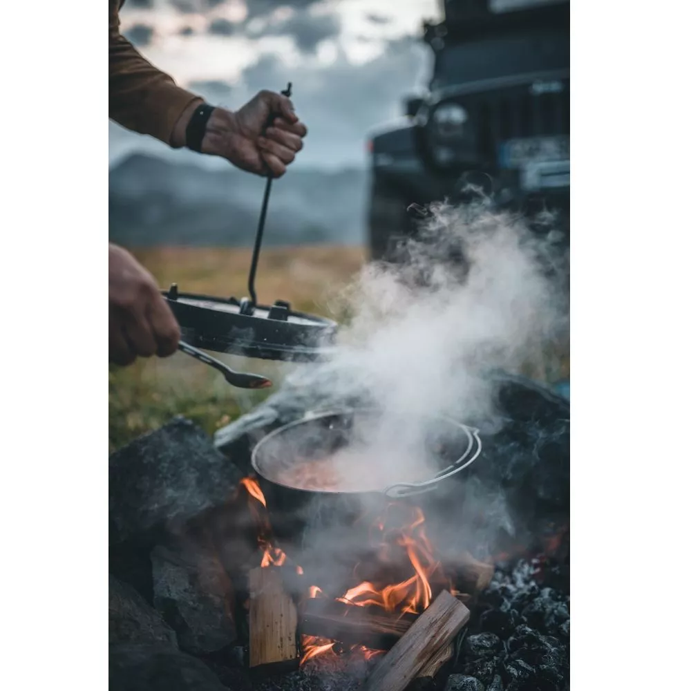 - Deckel des Feuertopfs auch als Pfanne oder Servierteller einsetzbar
