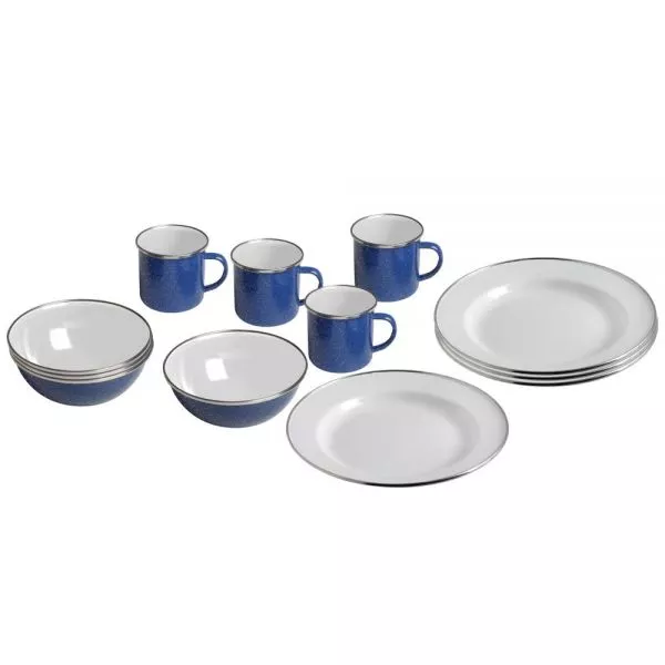 4 x Teller, 4 x Tassen, 4 x Schüsseln - aus hochwertigem Stahl mit Emaillebeschichtung