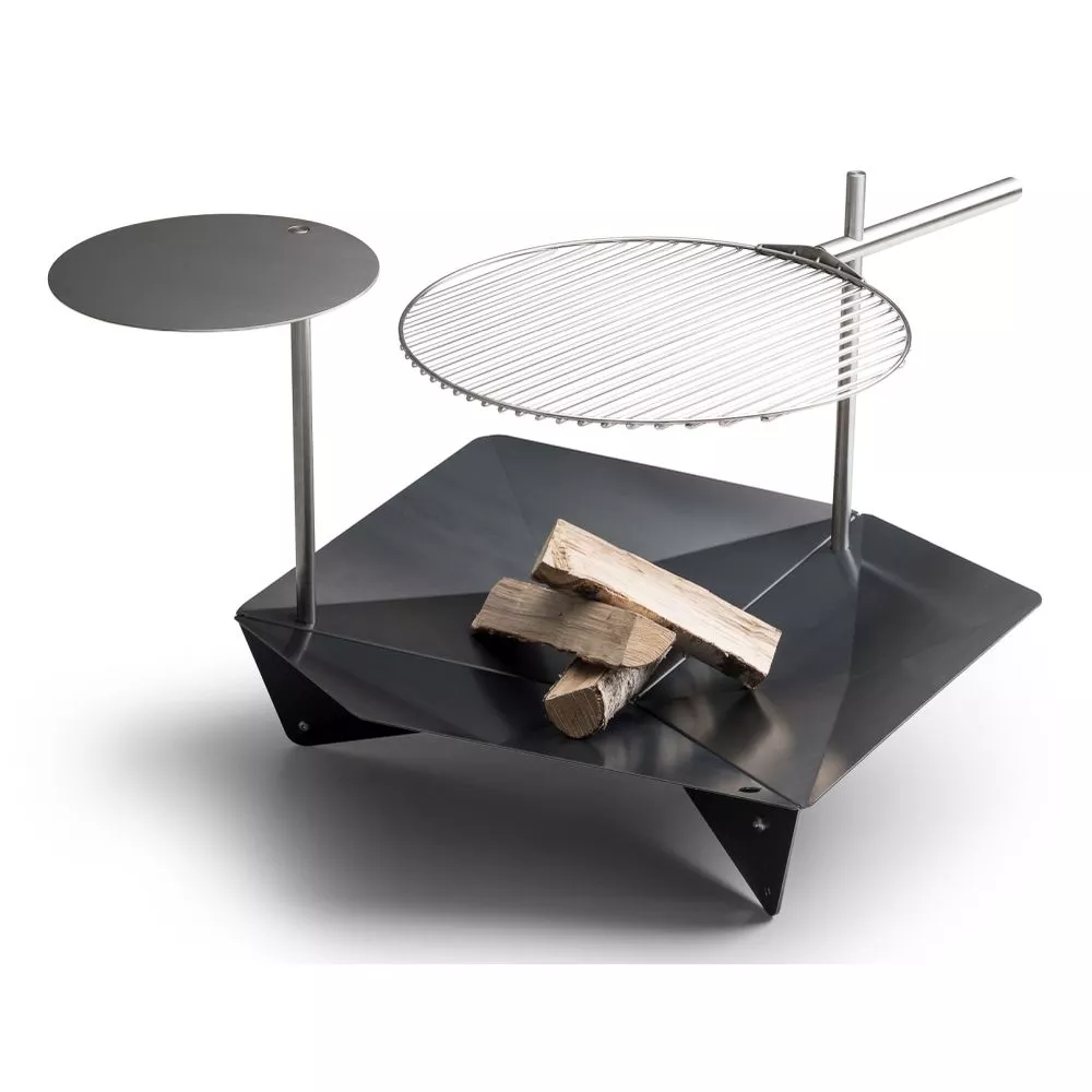 Mit der Triple 90 von Höfats bringst du Lagerfeuer-Stimmung an jeden Ort, ganz egal wo. Die Feuerschale ist schnell zerlegt, kompakt zu transportieren und einfach aufzubauen. Praktisch und ressourcenschonend! Du liebst Barbecues? Nutze die optionalen höhenverstellbaren und schwenkbaren Grillroste für saftige Steaks, zarten Fisch und leckere Veggies. Einen feurigen Eintopf kochst du ganz leicht auf der optionalen Plancha. Genauso gut kannst du die Platte auch zum Warmhalten des Grillguts nutzen, für eine gute Kanne Tee, Kaffee, Punsch oder Glühwein.
