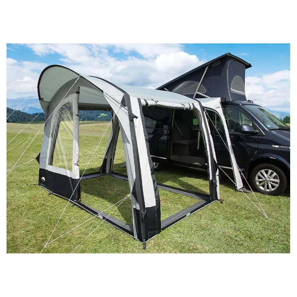 Unternimmst du am Wochenende gerne Kurztrips mit deinem Campingbus? Dann ist das freistehende Busvorzelt dwt Zelte Rodeo Air genau die richtige Wahl! Denn dieses aufblasbare Vorzelt passt mit einer Anschlusshöhe von 180-220 cm nicht nur ideal an deinen Bus, sondern ist auch mit vielen praktischen Details ausgestattet.