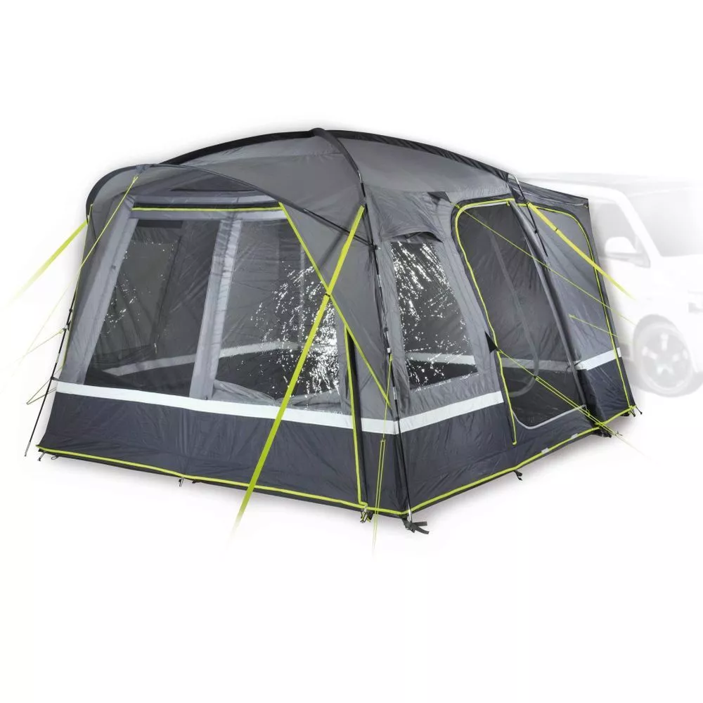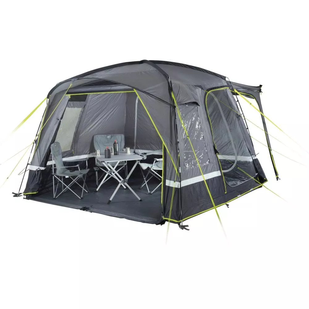 Der Schleusenkanal mit Hohlsaum ist inklusive Schleusen-Stange und angenähtem Doppelkeder-Streifen mit 5,8 / 7,2 mm. Die Anschlusshöhe beträgt 180 – 240 cm. Das Tour kann sowohl als Busvorzelt und als herkömmliches Übernachtungszelt verwendet werden – ein echtes Multitalent!