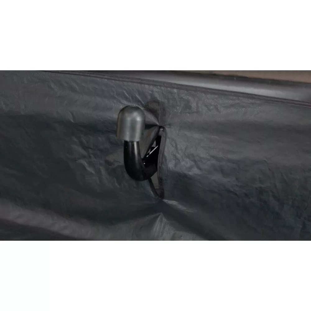 Das moderne HookTrack System bietet vielseitige Möglichkeiten zum Aufhängen von Zeltlampen, Kleidung und anderen leichteren Gegenständen.