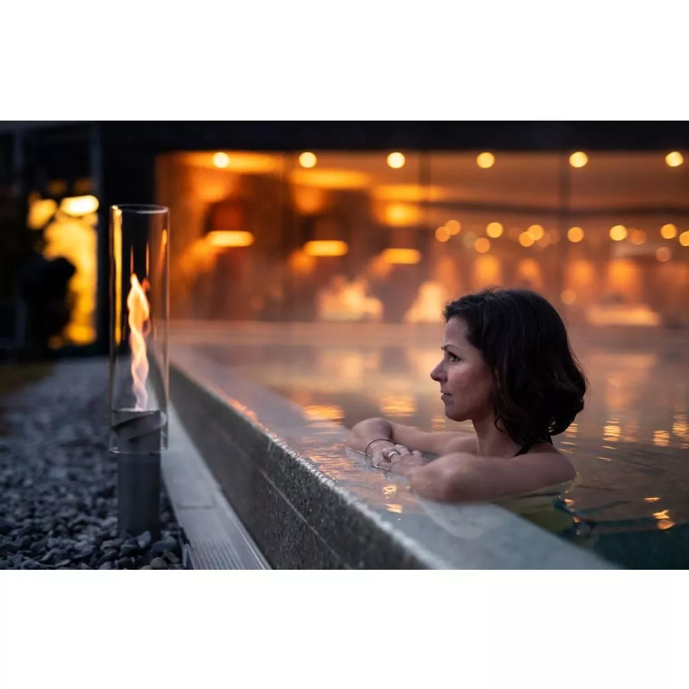 Dank des Höfats Spin 120 Erhöhungfuss in der Farbe golf macht dein Höfats Spin 120 am Boden eine noch bessere Figur. Ganz ohne Werkzeug wird der Standfuss angeschraubt und schon wird das Tischfeuer zur Gartenleuchte.