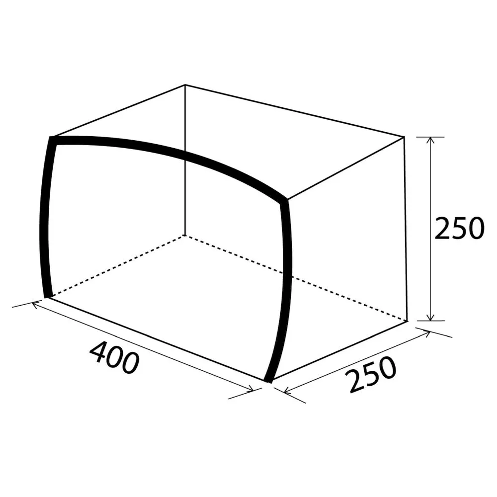 - Grösse: 400 x 250 x 235/250 cm (BxTxH)