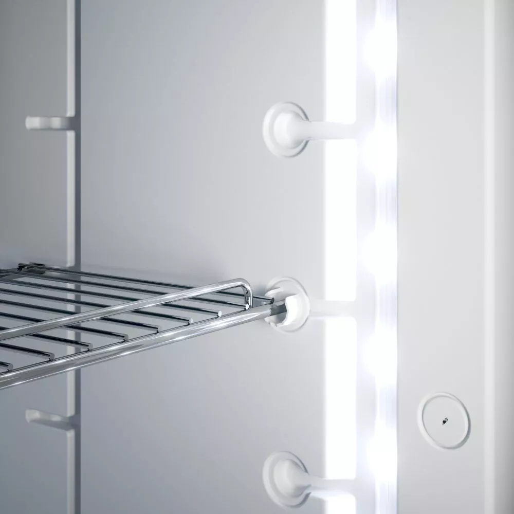 Auch die patentierten VG-Frischefächer in der Unterseiten sind sehr praktisch: Diese haben verstellbare Trennwände, regulieren die Luftfeuchtigkeit und besitzen einen Deckel, der auch als zusätzliche Ablagefläche genutzt werden kann. Eine schöne LED-Lichtleiste leuchtet im Dunkeln den Innenraum des Dometic Kühlschranks perfekt aus. Praktisches Zubehör wie stapelbare Behälter, Eierablage oder eine Eiswürfelschale können optional dazugekauft werden.