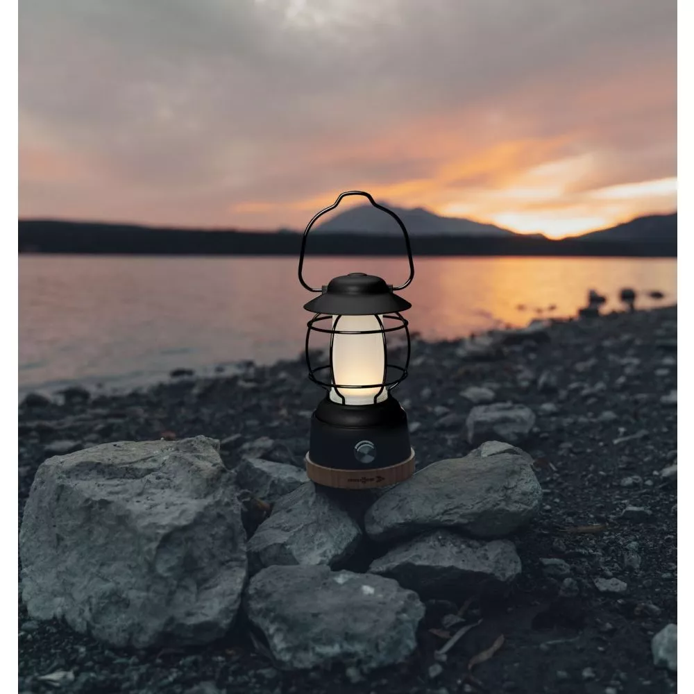 Die elegante LED-Laterne Brunner Lyss. Mit einem stabilen Metallrahmen (lackiert), dem kompakten Bambussockel und einem lichtdurchlässigen Kunststoffschirm eignet sich die Campinglampe ideal für den Outdoor-Bereich. Ausgestattet ist die wiederaufladbare LED-Lampe mit einem ON-OFF-Dimmschalter mit 2 Beleuchtungsmodi – ein warmes Licht und ein weisses Licht.