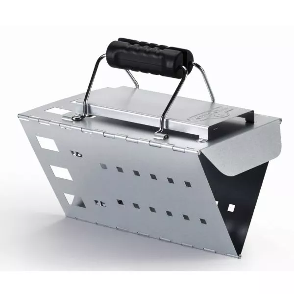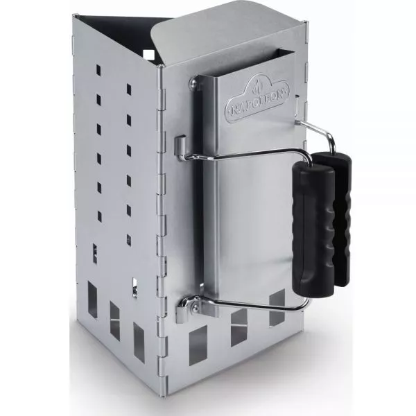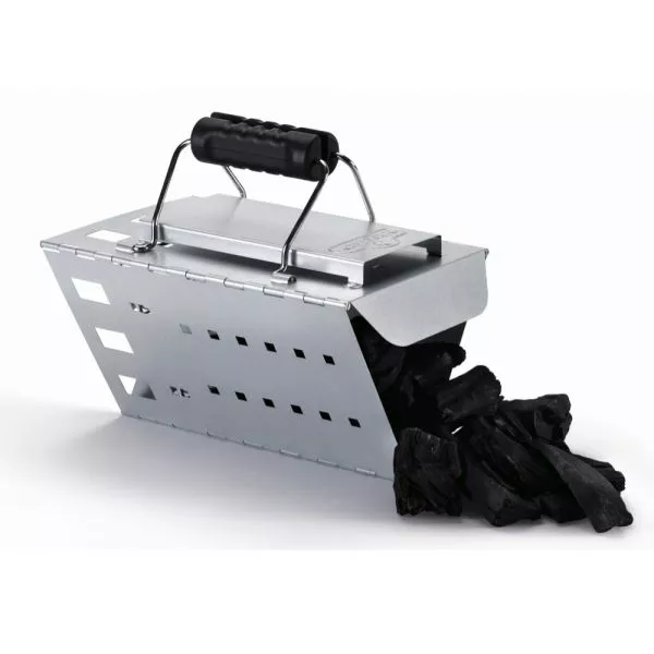 Maximale Luftzirkulation für 30% schnelleres Anzünden. Holzkohle tritt durch eckiges Design punktgenau aus. Schutzschild schützt Ihre Hand beim Einfüllen vor Hitze.