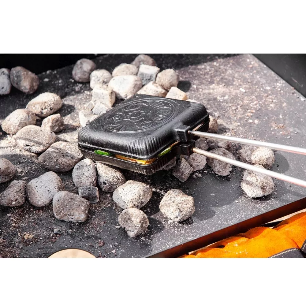 Das Sandwicheisen von Petromax ist perfekt für leckere Toasts, Bagels oder Teigtaschen. Ob als Snack am Lagerfeuer oder als tolle Ergänzung deines Grillmenüs: Sandwiches werden jetzt in den gusseisernen Formen in der Glut des Lagerfeuers oder auf dem Grill getoastet. Weil die Toastpfannen des Sandwicheisens die Hitze perfekt speichern, wird das Brot knusprig geröstet und die Füllung lecker saftig.