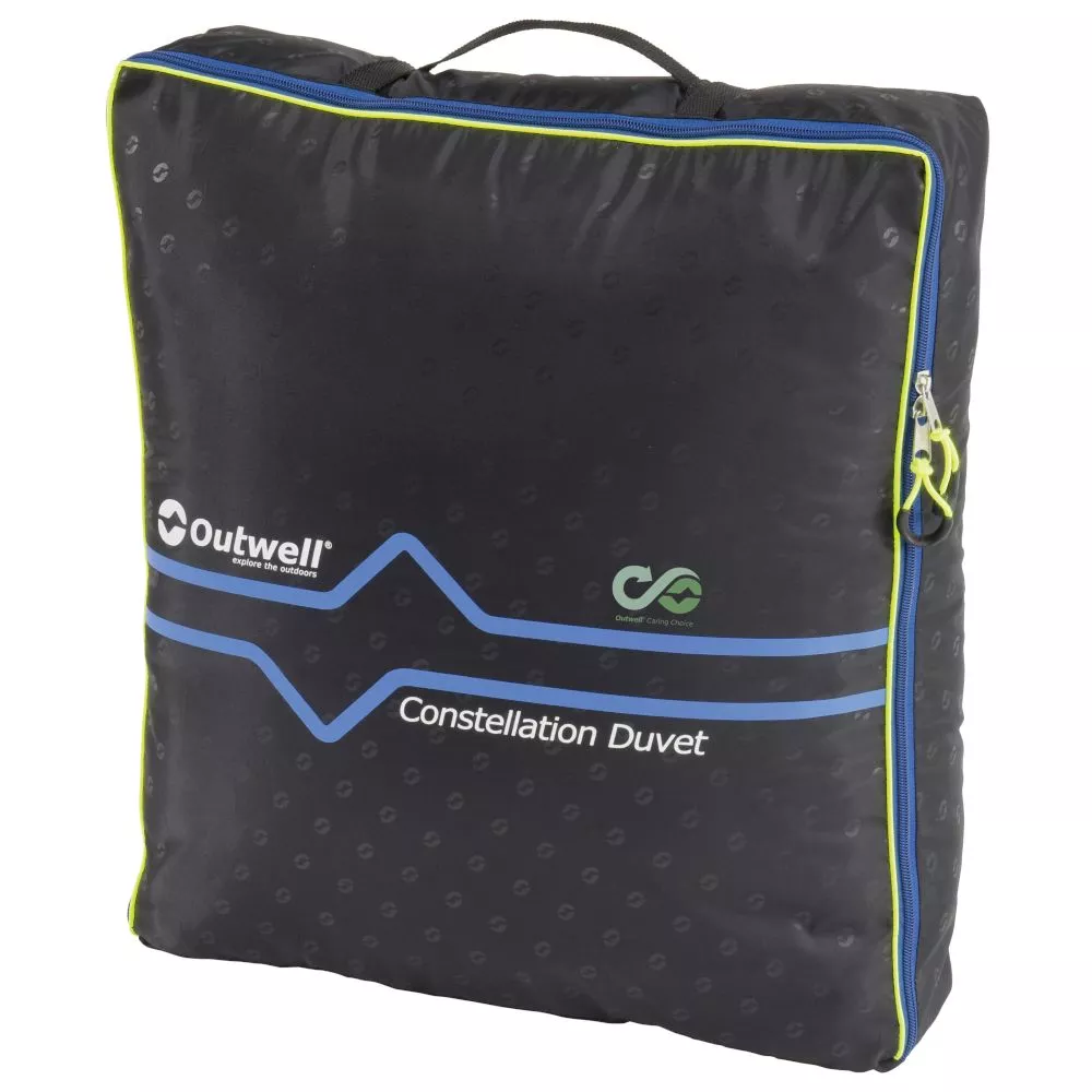 Die Schlafdecke Outwell Constellation Duvet Lux bietet vielseitige Möglichkeiten, um sich warm zu halten – auf dem Campingplatz, am Strand, bei Veranstaltungen im Freien, bei einem Picknick und selbst bei einem Grillabend im eigenen Garten. Sie bietet die perfekte Ausweichmöglichkeit für jeden, der eine Alternative zu einem herkömmlichen Schlafsack sucht. Die Schlafdecke mit einer Grösse von 200 x 135 cm ist mit der superweichen Isofill-Premium-Füllung ausgestattet, die sich durch eine grossartige Bauschkraft und Wärmedämmung auszeichnet. Der Innenbezug besteht zu 100% aus Baumwolle und sogt für ein angenehmes Schlafgefühl. Die Aussenseite besticht durch schmutzunempfindliches Polynylon. Wieder zuhause angekommen, kann die Constellation Duvet bei bis zu 60°C in der Waschmaschine gereinigt werden. Verpackt wird das Deckbett in dem mitgelieferten Packsack und kann, wie ein herkömmlicher Schlafsack, auf ein kleines Packmass zusammengelegt werden.