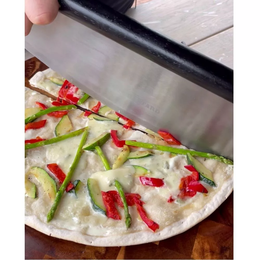 Mit dem Bastard Pizzaschneider aus Edelstahl zerteilst du schnell und einfach Pizza und Flammkuchen in Stücke, ohne dass der Belag dabei verrutscht.