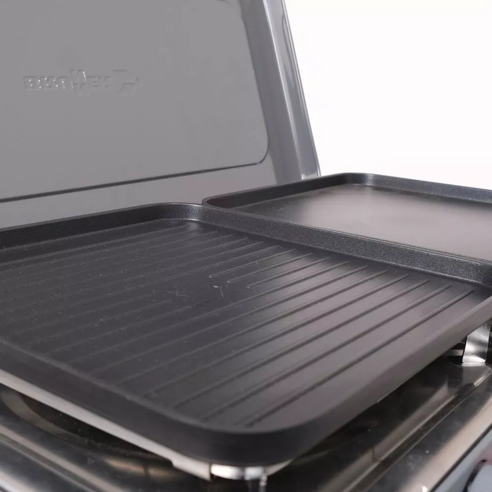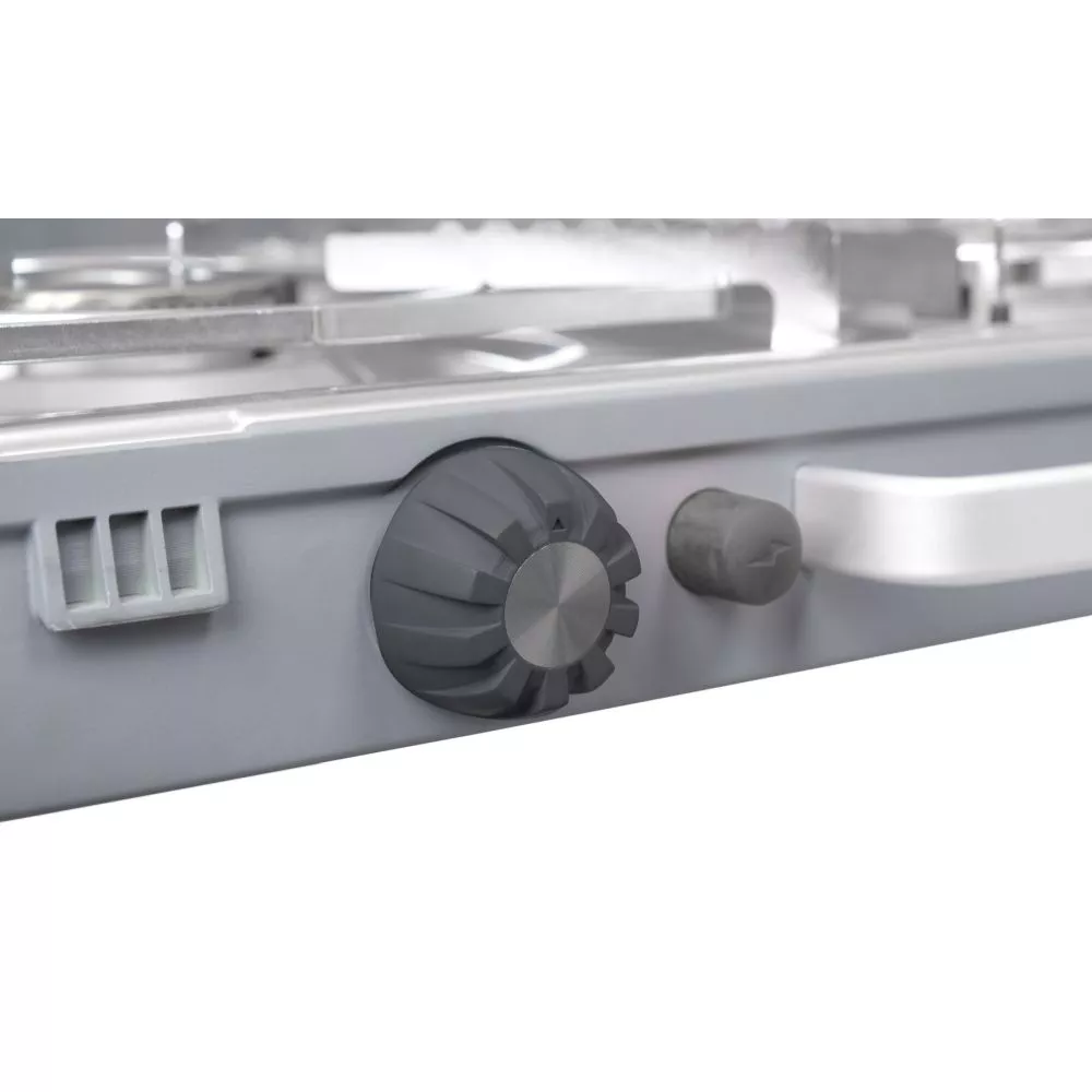 Der Gasherd Brunner Devil Kookmaster GP 50 ist ein kulinarisches Muss für dein Outdoor-Kocherlebnis. Mit seiner eleganten Edelstahl-Kochfläche verbindet der 2-flammige Herd Funktionalität mit Stil. Durch piezoelektrische Zündung lässt sich der Herd mühelos einschalten. Der Campingkocher ist mit Deckel und Griff für einfachen Transport ausgestattet und eignet sich perfekt für Outdoor-Abenteuer oder als zuverlässiges Backup für zu Hause. Der Devil Kookmaster GP wird mit einer glatten und einer geriffelten Grillplatte geliefert.
