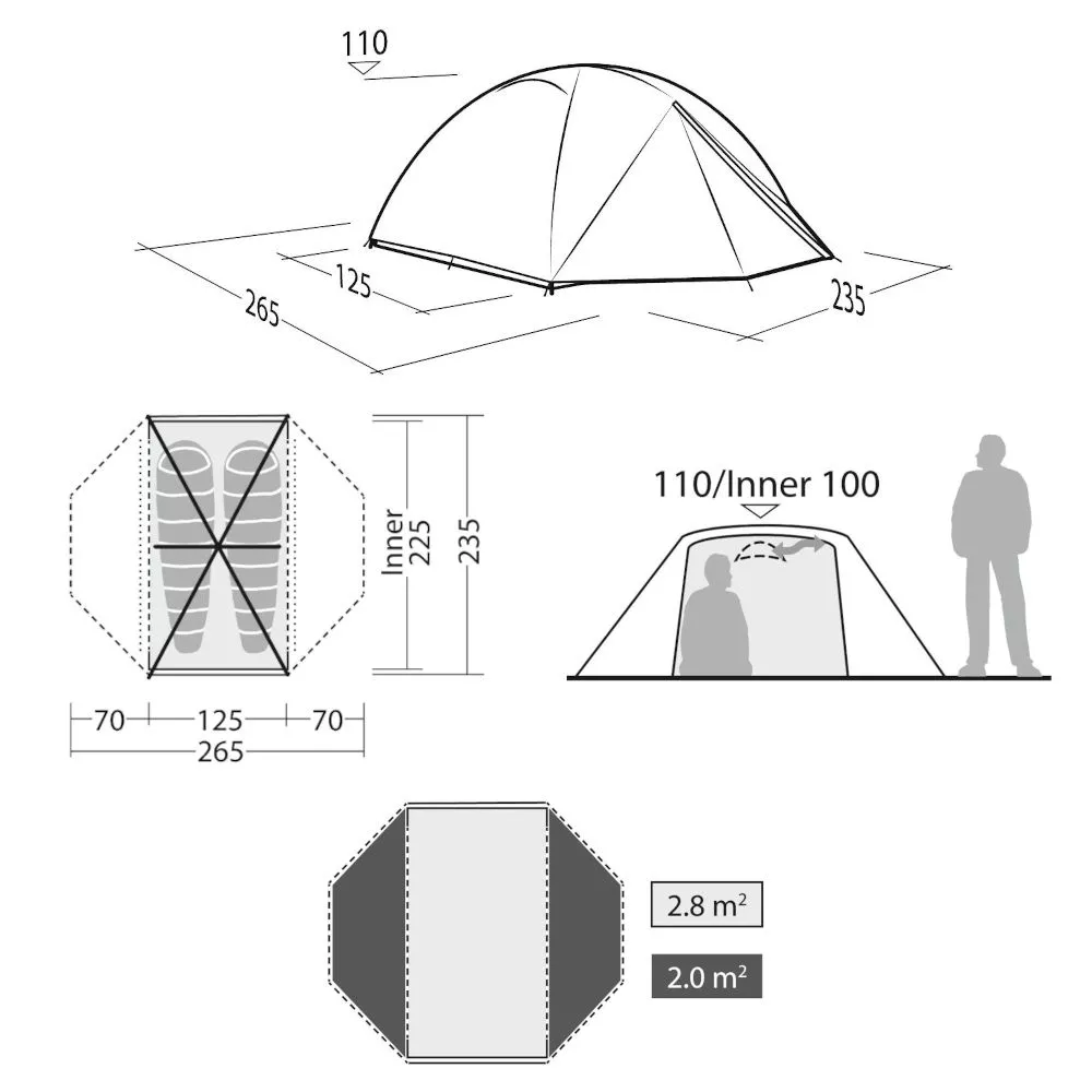 Aussenzelt: HydroTex HD RS, 75D Polyester 190T, Ripstop, Wassersäule: 5.000 mm, PFC-freie Wasserabweisung