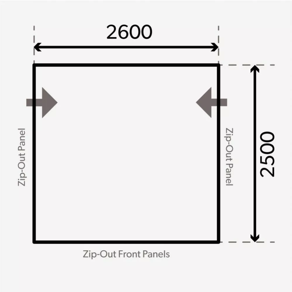 Die grosszügige Raumhöhe trägt zu einem einzigartigem Raumgefühl bei. Das Zeltdach des Dometic Rally Air Pro 260 besteht zusätzlich aus dem Dual-Pitch-Roof System. Das bedeutet, dass Wind und Regenwasser noch besser abfliessen, um so Wassersäcke oder ein Durchhängen des Daches zu vermeiden.